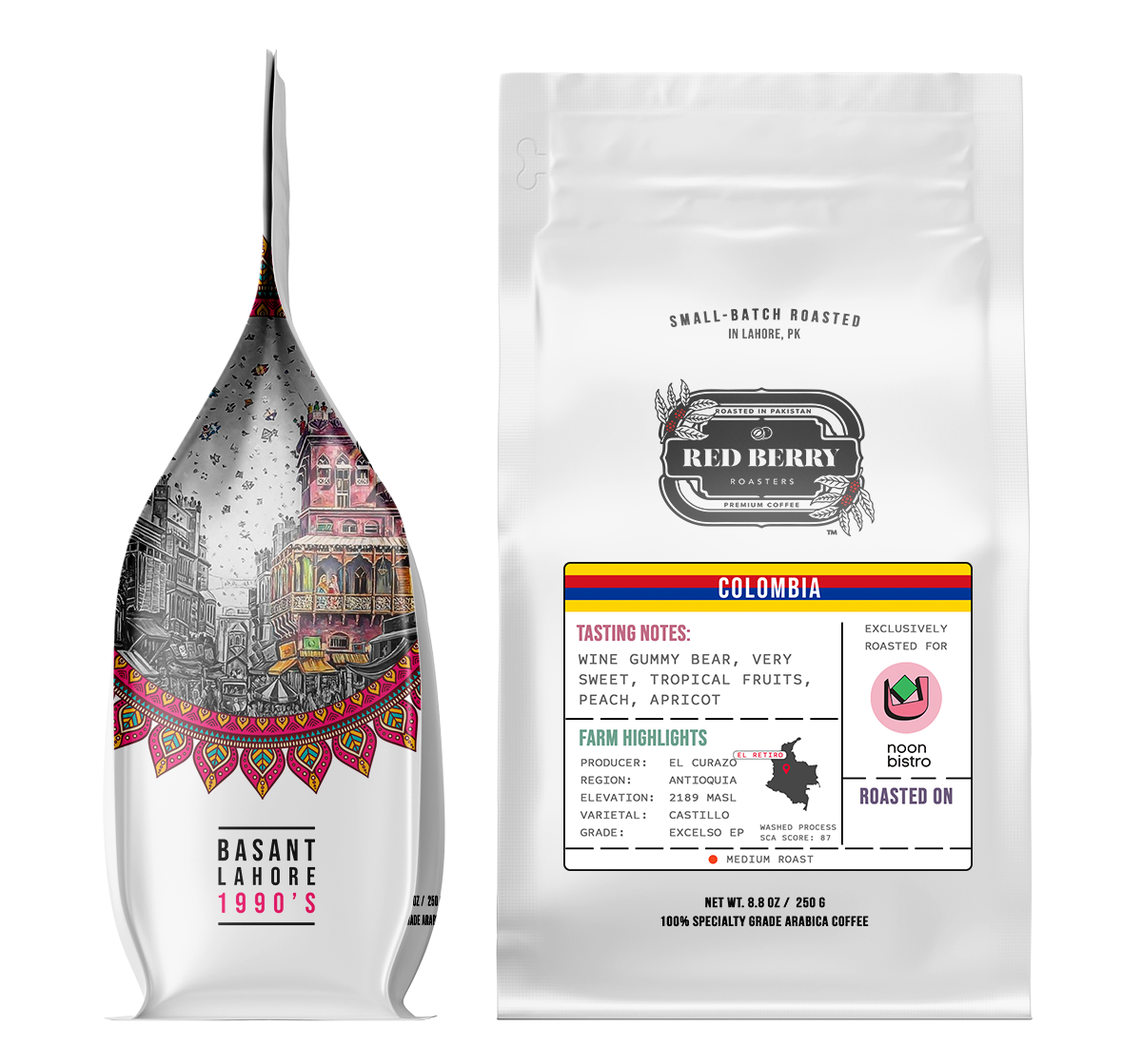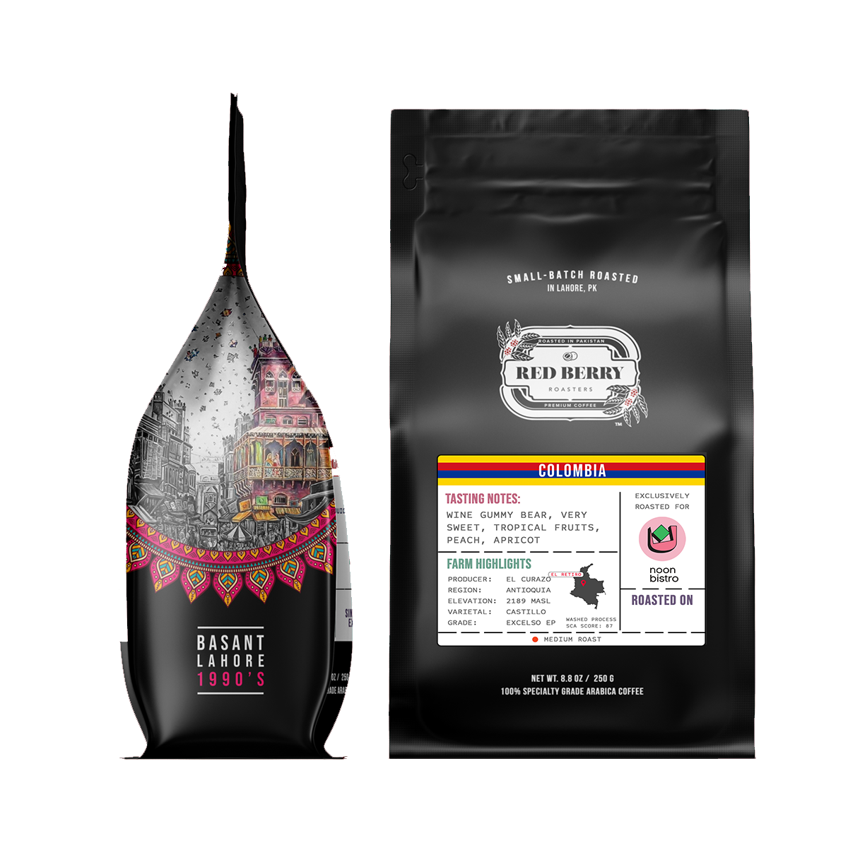 The Colombia single origin espresso from El Curazo, with an impressive SCA score of 87, offers a vibrant and sweet flavor profile. It is characterized by the unique note of wine gummy bear, which brings a playful, fruity sweetness with hints of wine-like richness. The coffee is very sweet, with tropical fruit flavors such as peach and apricot, adding layers of juicy, sun-ripened fruitiness. These lively, tropical notes are balanced by the wine-inspired sweetness, making for an exciting and complex cup. This espresso is perfect for those who enjoy a bold yet sweet and fruity experience with a touch of playful wine-like character.