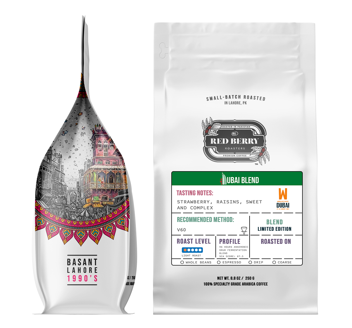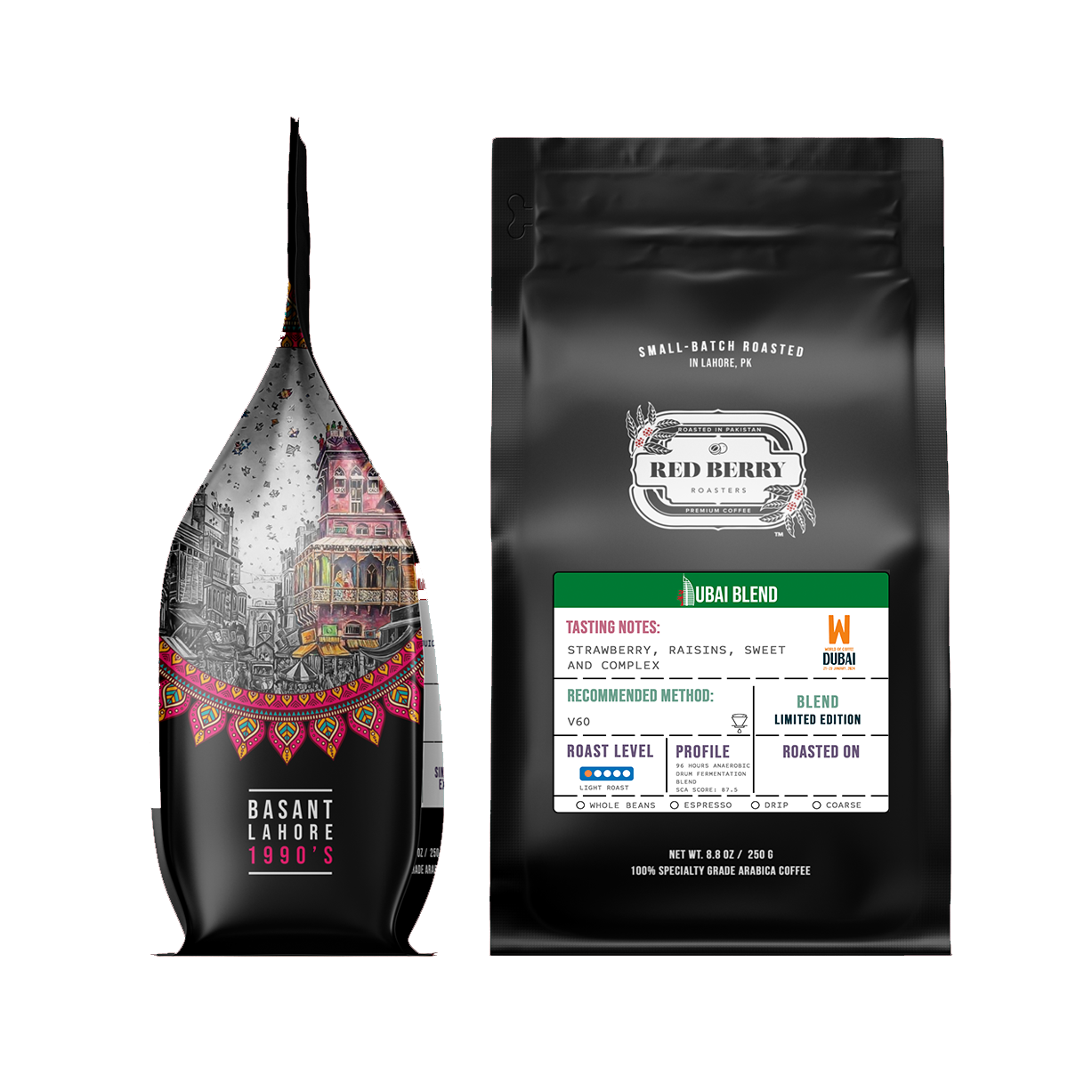 The Dubai Blend is a truly special offering crafted through a meticulous 96-hour anaerobic drum fermentation, paired with a mild roast that brings out a deeply sweet, fruit-forward flavor profile. From the first sip, you're greeted with a vivid burst of strawberry, followed by the rich depth of raisins, creating a balanced, smooth cup with lasting complexity. Designed for those who appreciate vibrant, refined coffees, it shines when brewed in a V60, delivering elegance in every pour.
