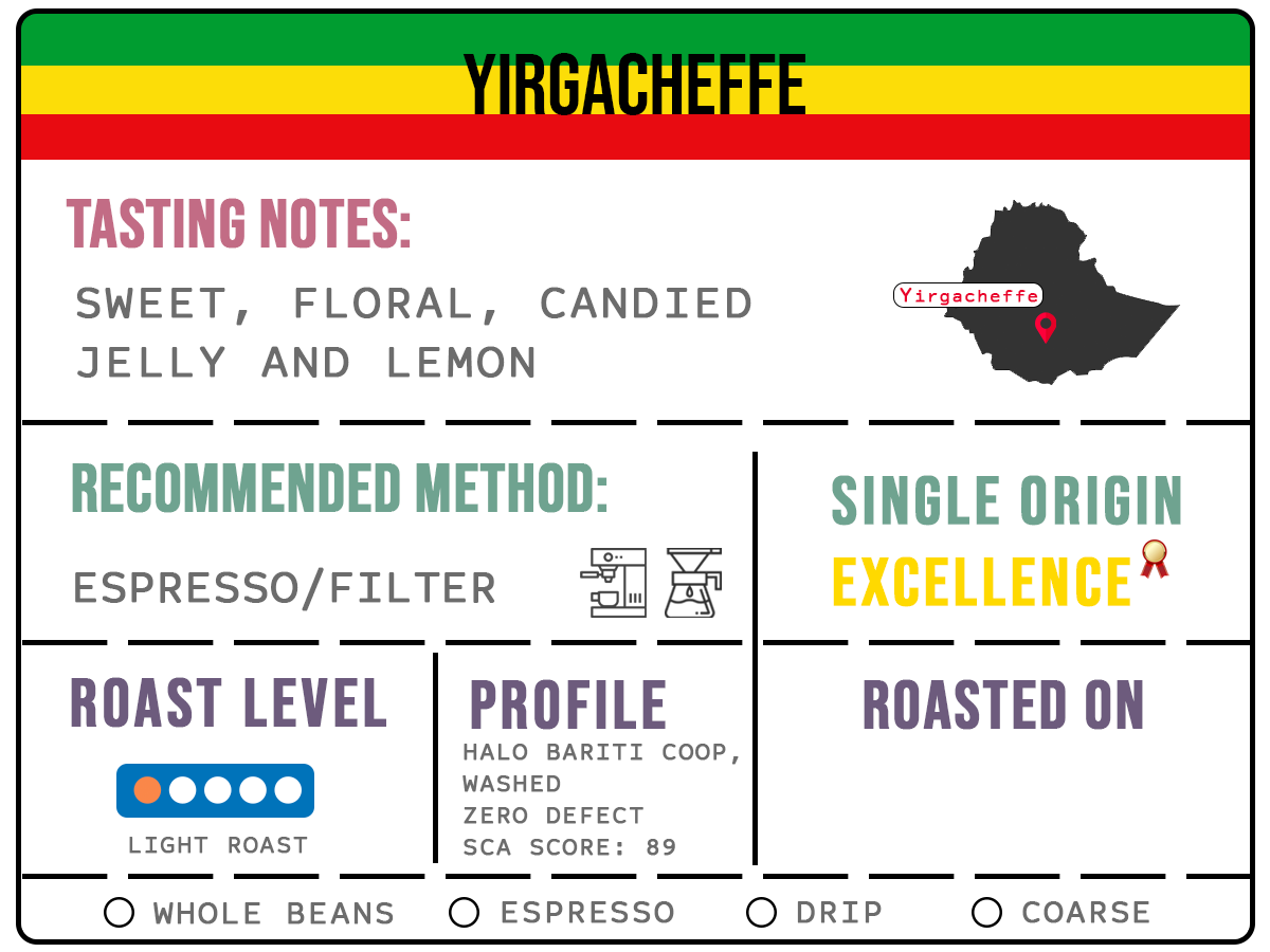 Yirgacheffe Origin – Celebrated for its vibrant and complex cup profiles